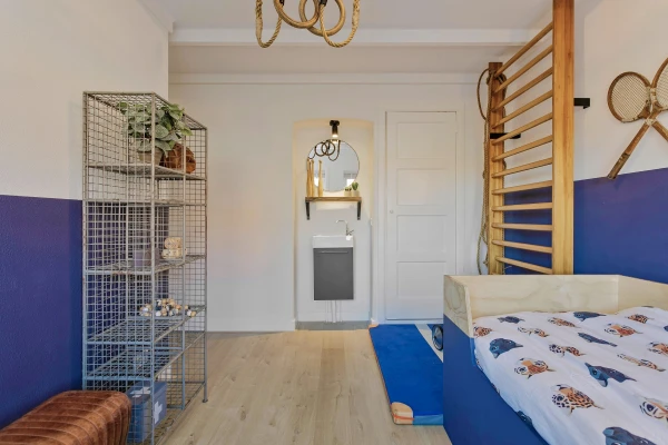 Voor een sportieve en energieke jongen mocht ik deze jongenskamer ontwerpen. De basis werd een diepe, stoere blauwtint die direct sfeer en rust brengt. Daarbij heb ik gekozen voor een mix van vintage sportitems, die het interieur een persoonlijke en speelse touch geven.