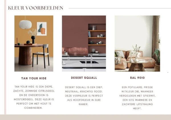 Na afloop krijg je een overzichtelijk digitaal plan toegestuurd met het complete kleuradvies, inclusief duidelijke toepassingen voor muren,