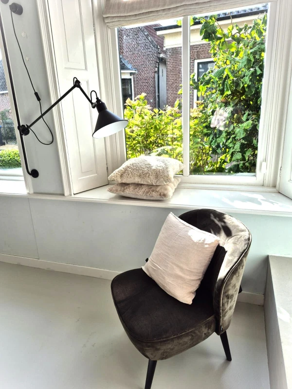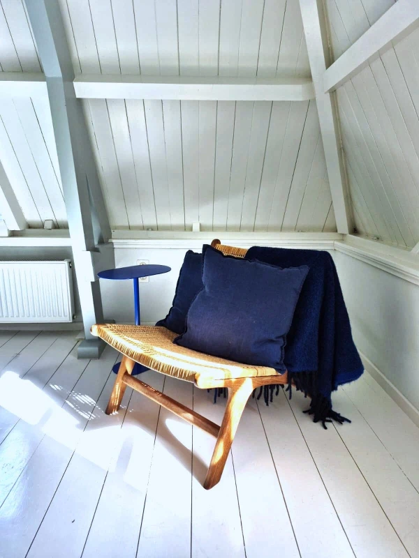 Om de sfeer en mogelijkheden van de woning te benadrukken, heb ik in elke slaapkamer een klein aantal meubels en accessoires geplaatst. Hiermee kregen de kamers warmte en uitstraling, zonder het gevoel van ruimte te verliezen. De lichte en luchtige styling maakt het geheel toegankelijk voor een breed publiek, terwijl de authentieke charme van de woning centraal blijft staan.