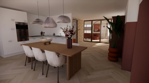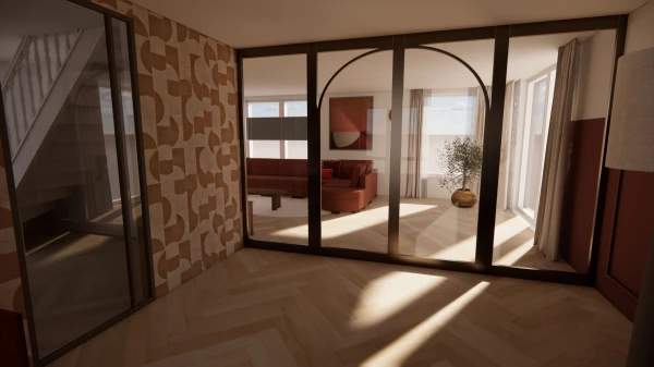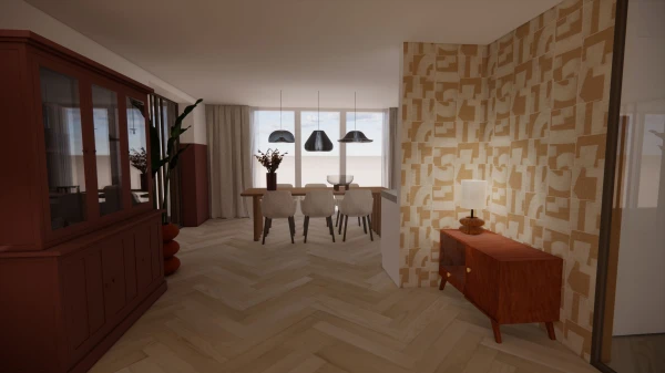 Voor dit gezin van vijf heb ik een interieurontwerp mogen maken dat recht doet aan de uiteenlopende smaken van de bewoners. Het combineren van twee totaal verschillende stijlen kan een uitdaging zijn, maar met grondig onderzoek naar de wensen van beide bewoners heb ik een ontwerp gecreëerd waarin beide stijlen tot hun recht komen. Een belangrijk uitgangspunt was de kleur okergeel, die door beide bewoners als favoriet werd gekozen. Daarnaast wilde de een graag behang gebruiken, terwijl de ander streefde naar eenheid in het interieur.